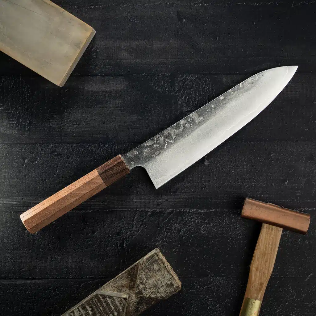 Håndværket bag de japanske knive adskiller sig ved sin kompromisløse tilgang til perfektion. Alt begynder med stålet, som smedes og bearbejdes, hærdes og temperes for at opnå den rette balance mellem hårdhed og fleksibilitet.