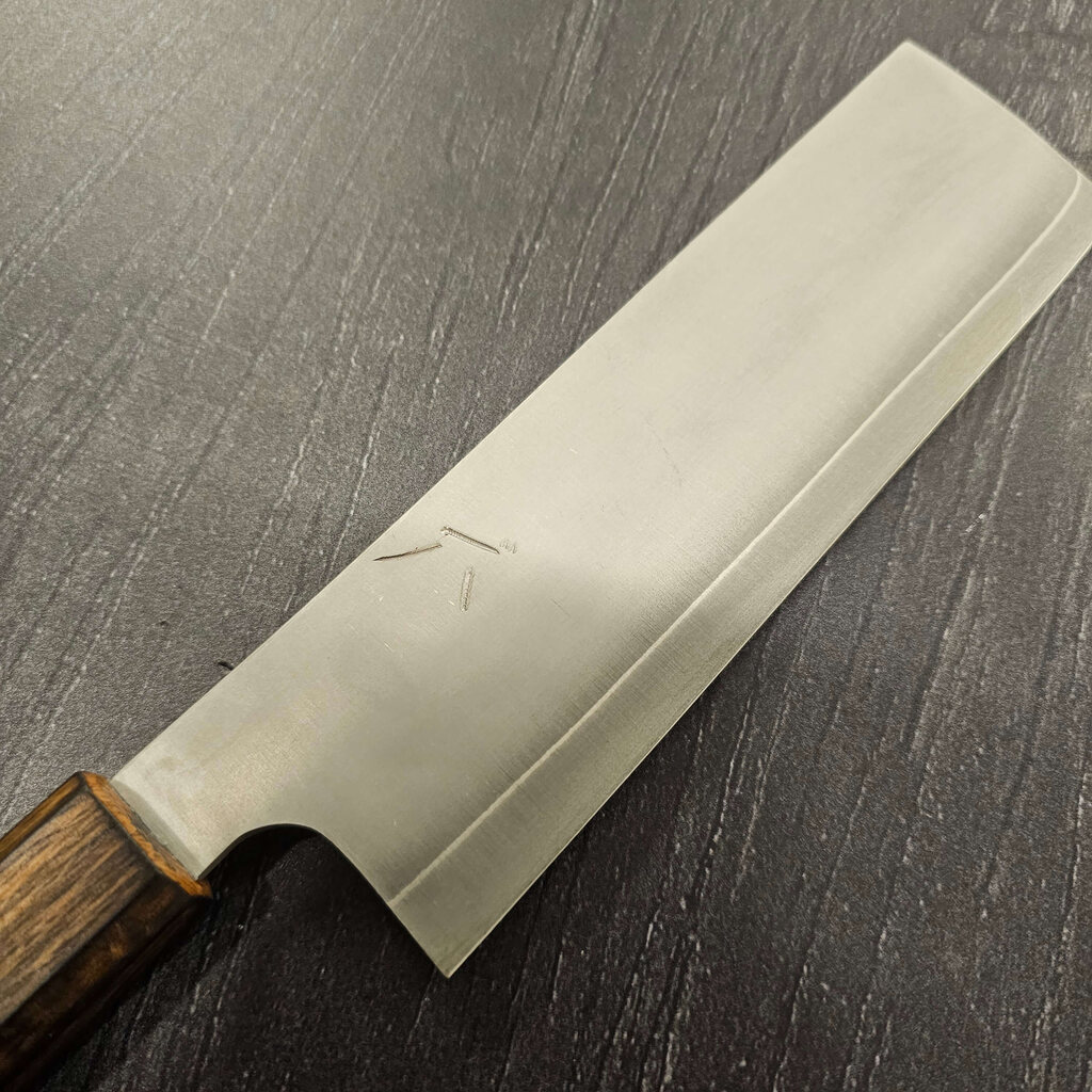 Når klingen ankommer til Suba Knives, er den ens i tykkelsen. Den tyndes på store slibesten med hjælp fra en togibou – et specialbræt der giver kontrol under arbejdet. Det kræver stor erfaring og fuld koncentration at forme bladet præcist og ensartet.