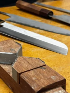 I slutningen af 2021 åbnede jeg værksted, hvor jeg restaurerer og producerer knive som man også gør i de traditionelle værksteder i Japan. Jeg kombinerer min erfaring fra restaurationsbranchen med den ekspertise, jeg har opnået ved at arbejde med nogle af Japans dygtigste knivmagere.