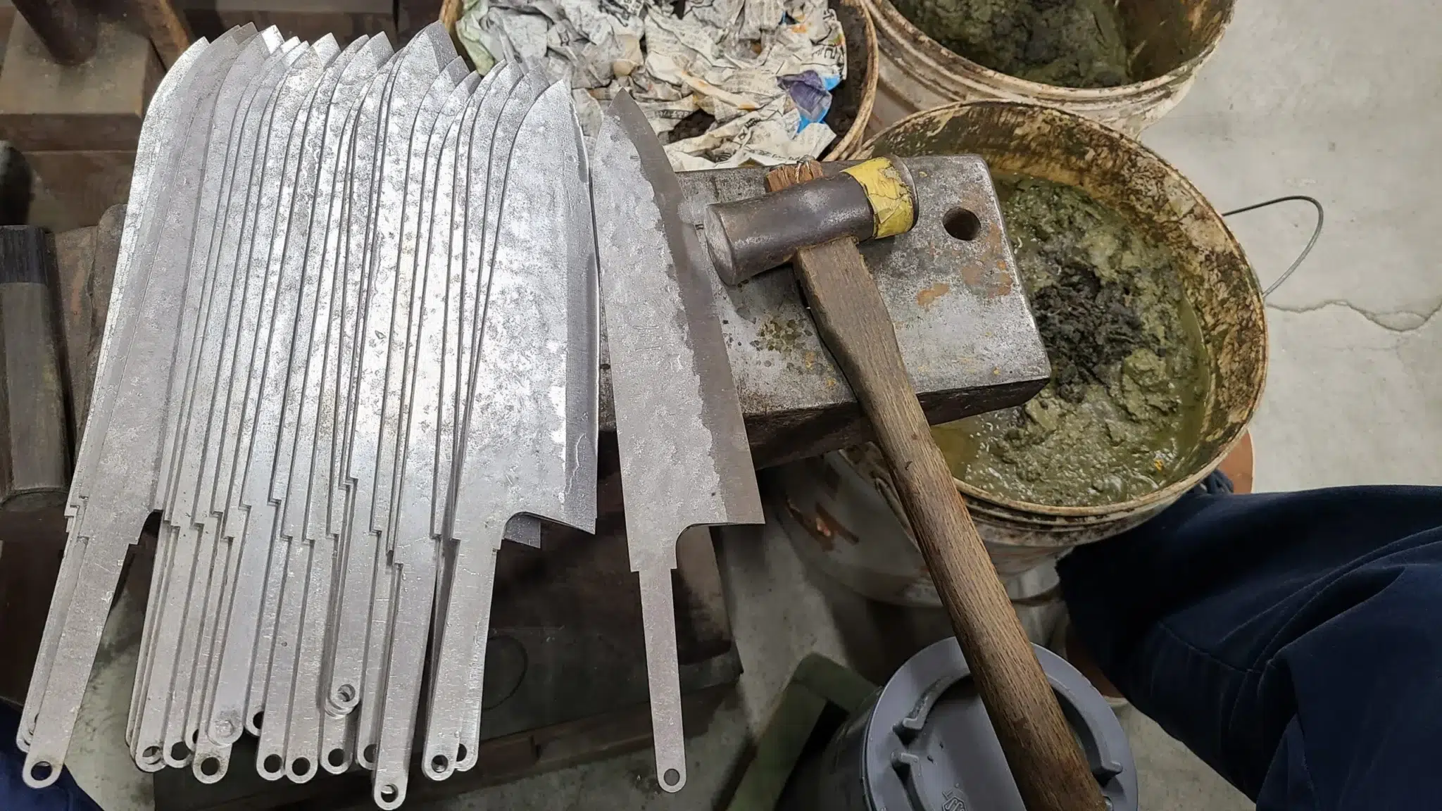 Se f.eks. denne kniv lavet i Blåt 2 stål