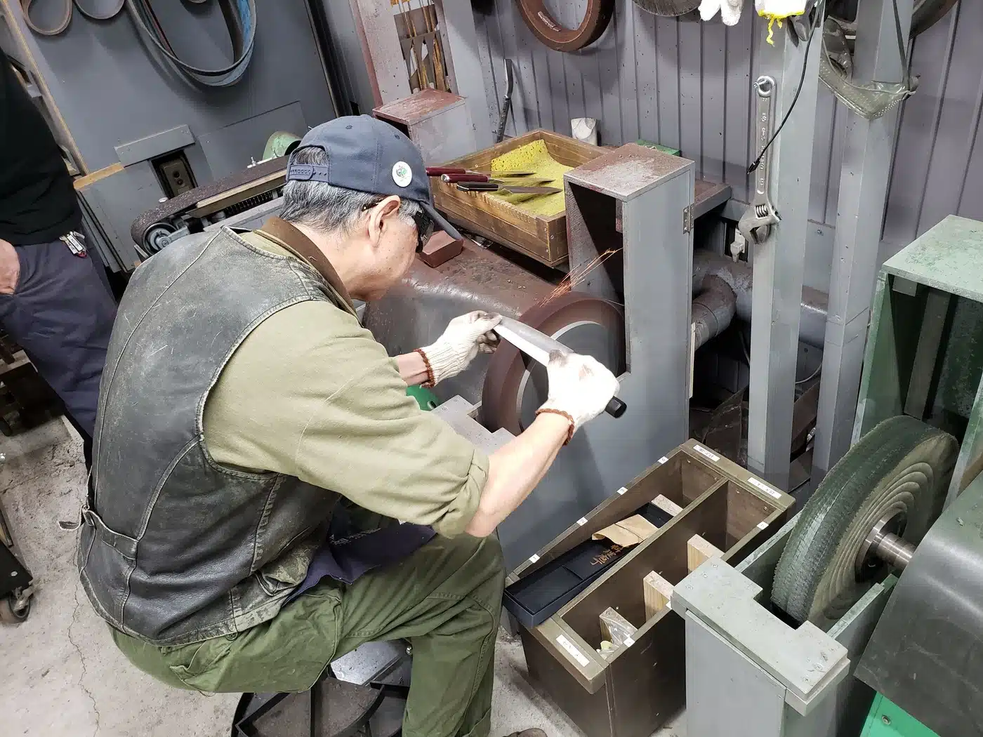Knivslibningen udføres af mig, Steffen, som har gennemført en fireårig uddannelse i knivslibning i Sakai, Osaka. Jeg er én af blot tre ikke-japanere, der har denne form for slibeuddannelse, og har siden arbejdet side om side med nogle af Japans dygtigste slibere og knivmagere. Det betyder også, at jeg flere gange er blevet kontaktet, når andre knivslibere desværre har ødelagt kunders knive med forkerte vinkler eller for grove slibemetoder.