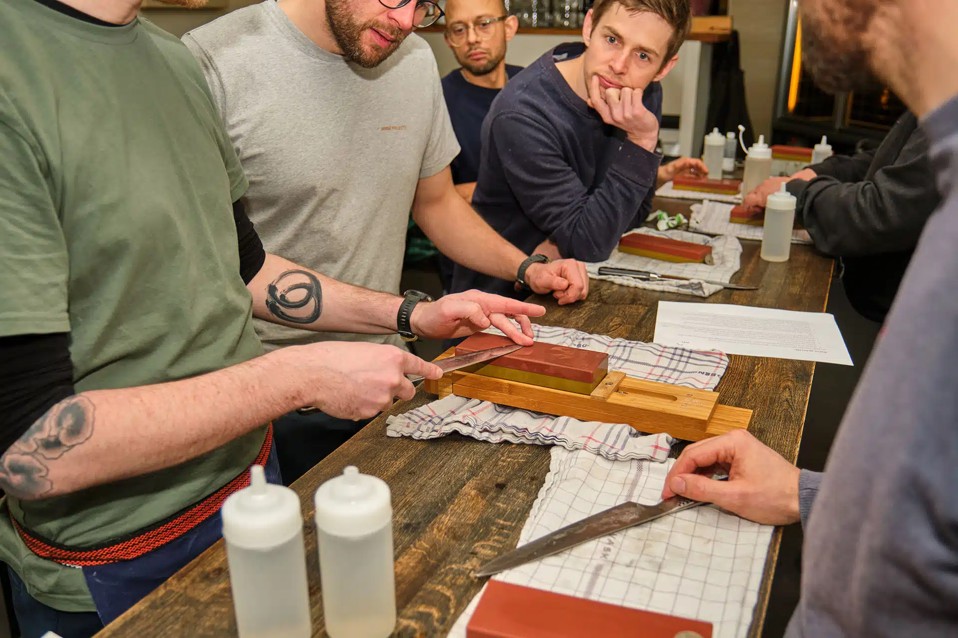 Suba Knives tilbyder også kurser, hvor du kan lære at slibe dine egne knive. På kurset vil du få grundig teoretisk og praktisk viden om knivslibning og vådstenens anvendelse. Jeg vil også guide dig igennem slibeprocessen, så du kan få det bedste resultat.