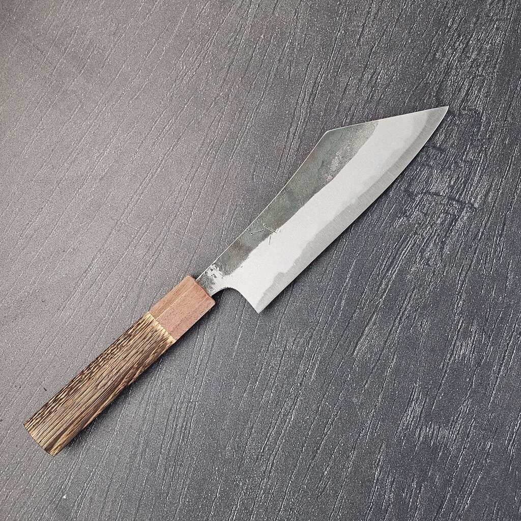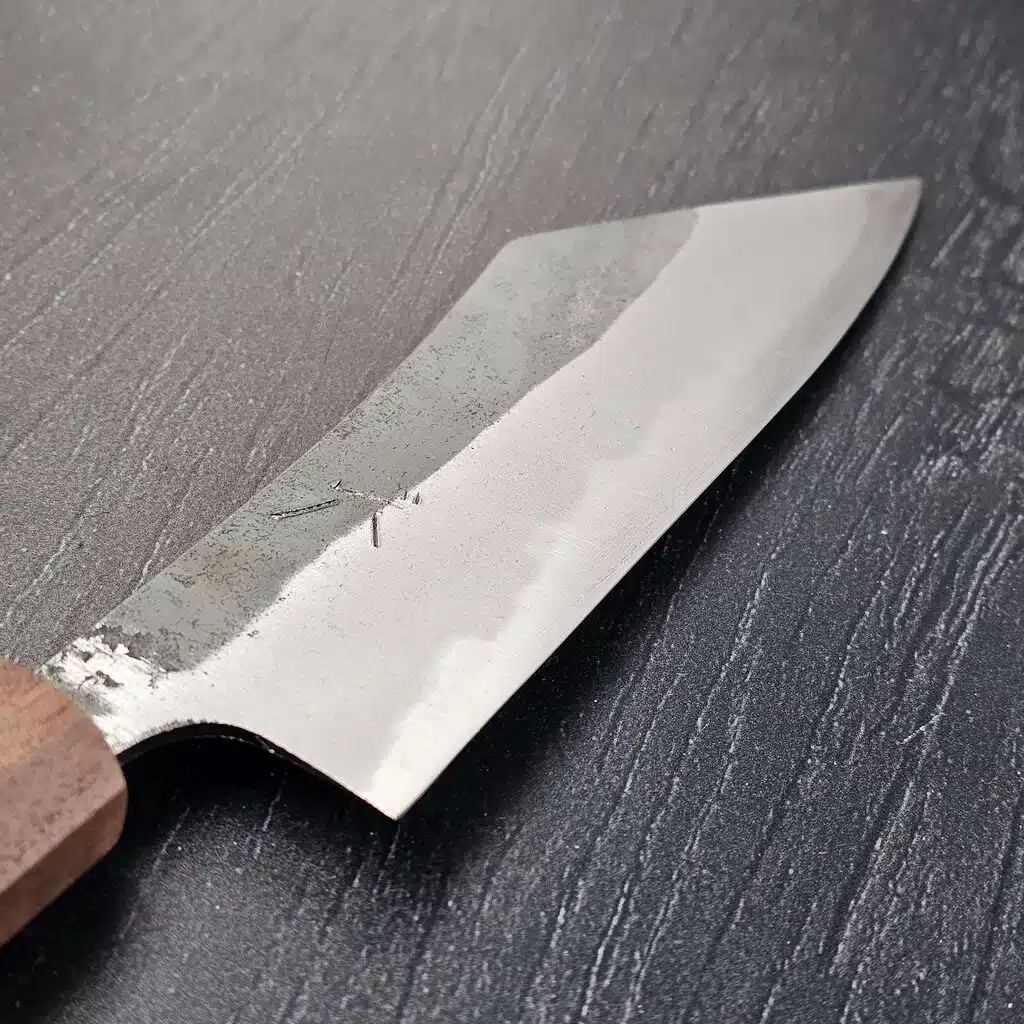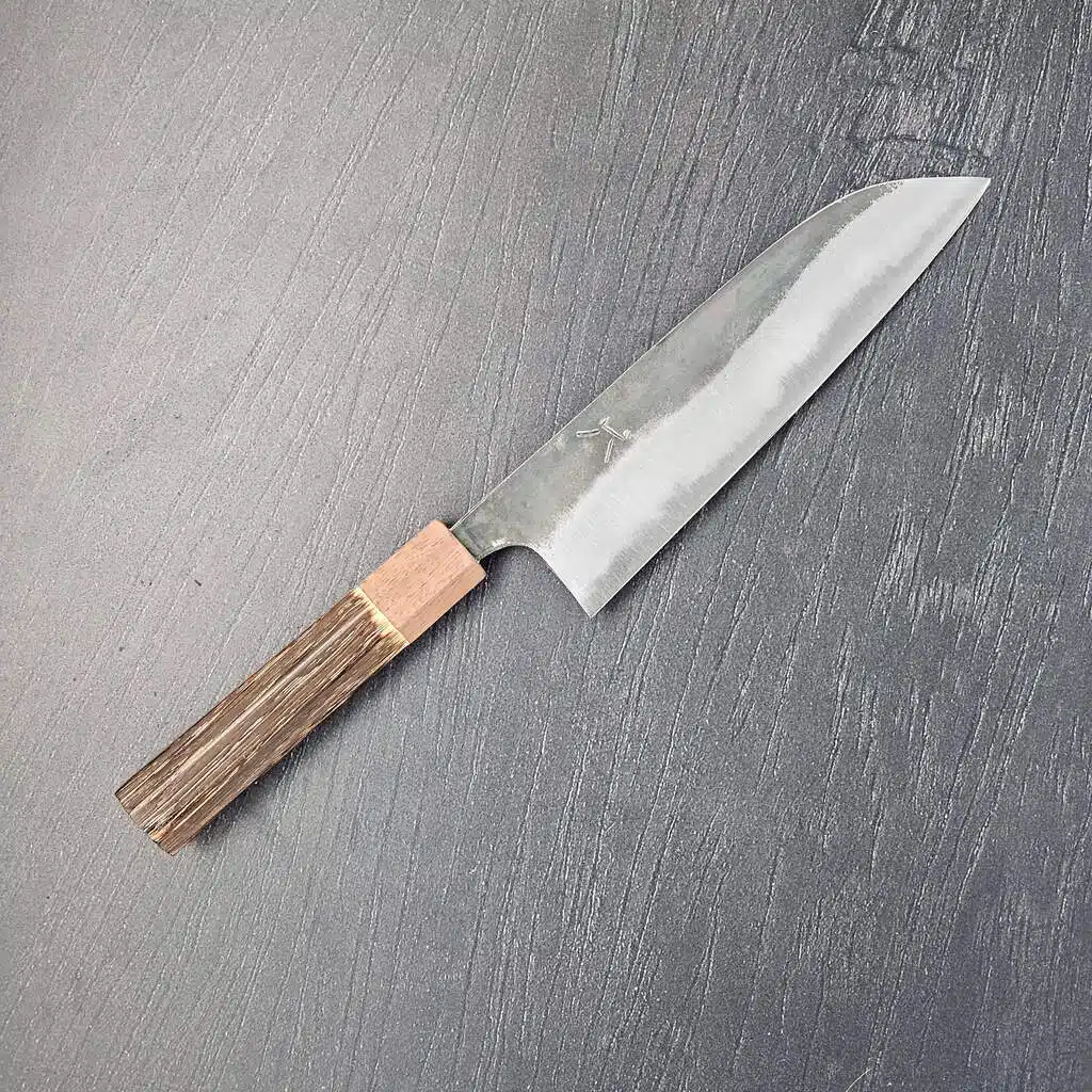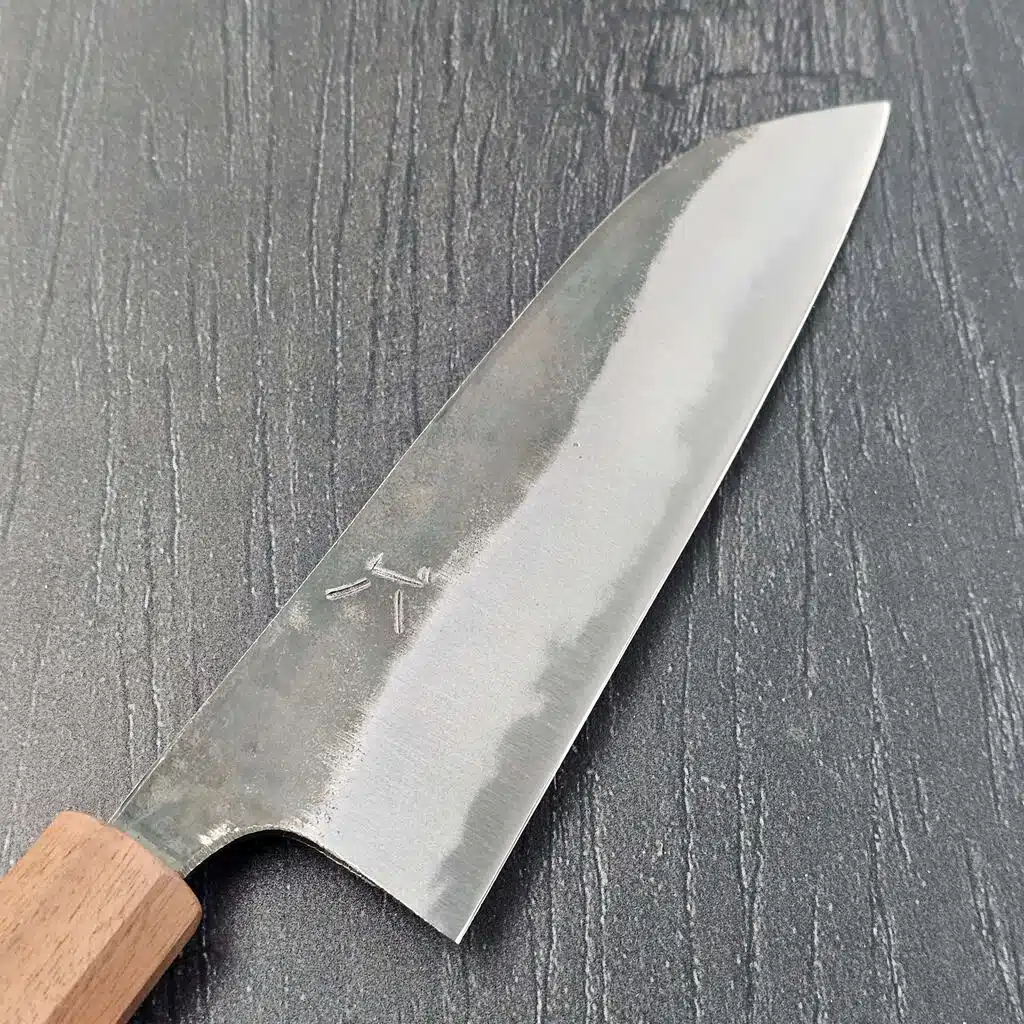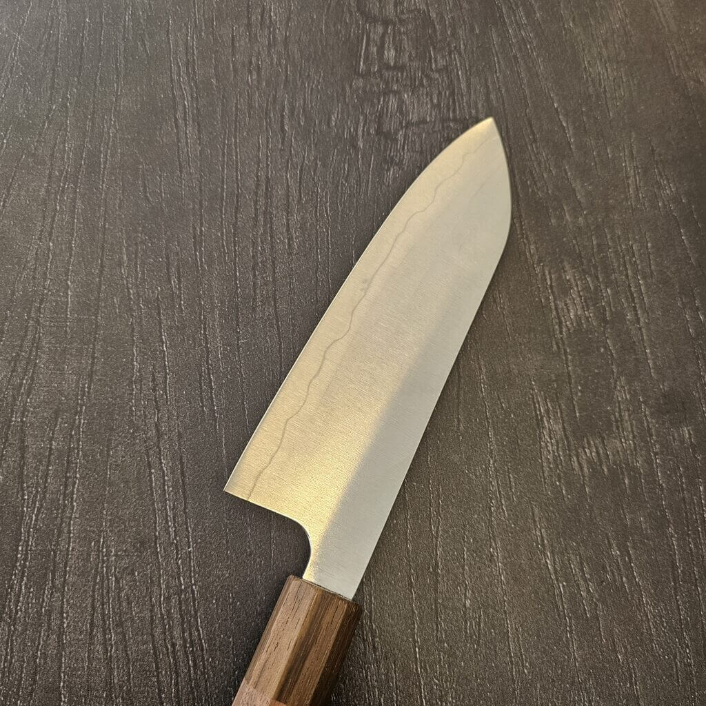 Den fladere profil og det høje blad gør det nemt at føre kniven stabilt gennem grøntsager, kød eller fisk, og det er sjældent nødvendigt med den store tilvænning. Mange kokke bruger stadig Santoku kniven som deres “go-to” kniv, fordi den er effektiv uden at være krævende.