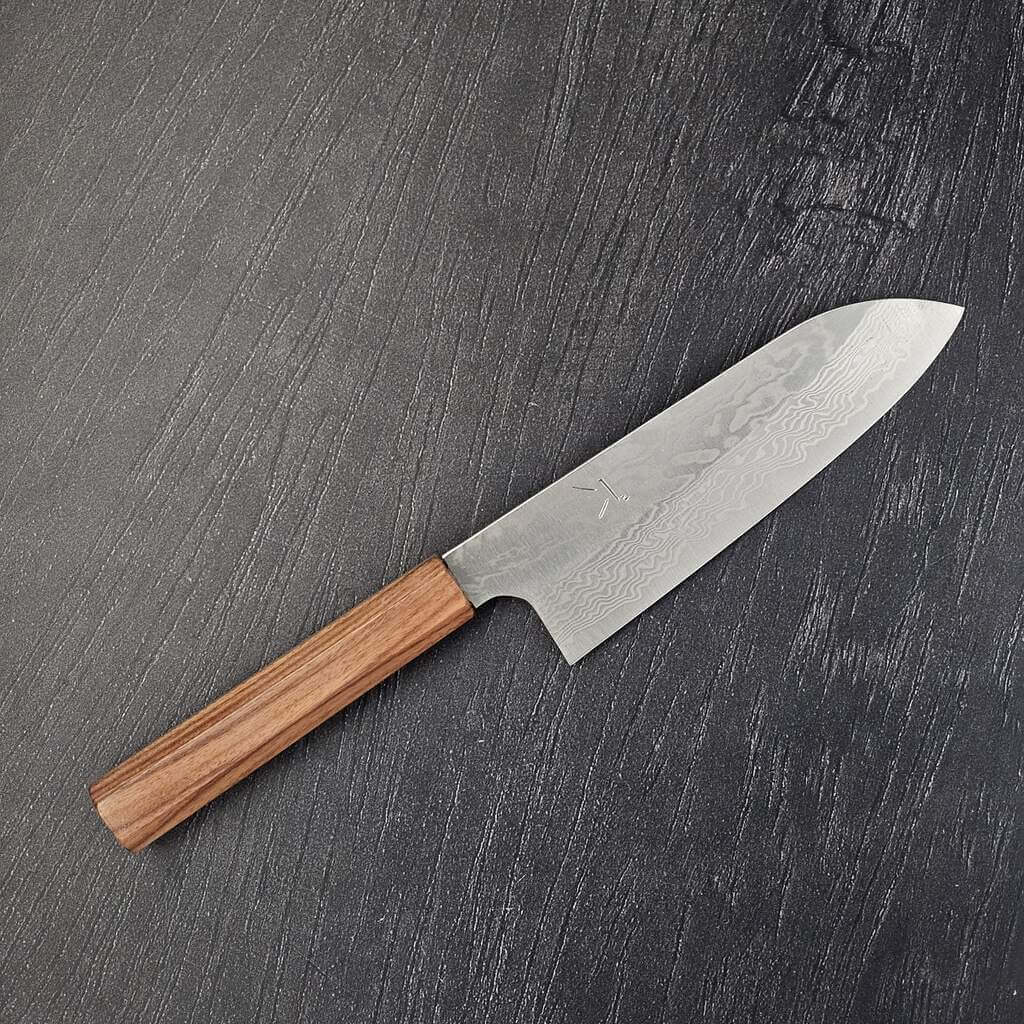 Santoku kniven er udviklet i Japan som svar på behovet for en allround-kniv, der kunne fungere i små hjemmekøkkener. Det er også derfor, at den typisk er kortere end fx en Gyuto, og ofte ligger mellem 165 og 180 mm i klingelængde. Det giver dig bedre kontrol, og gør den lettere at styre, uden at man mister kraft eller skæreevne.
