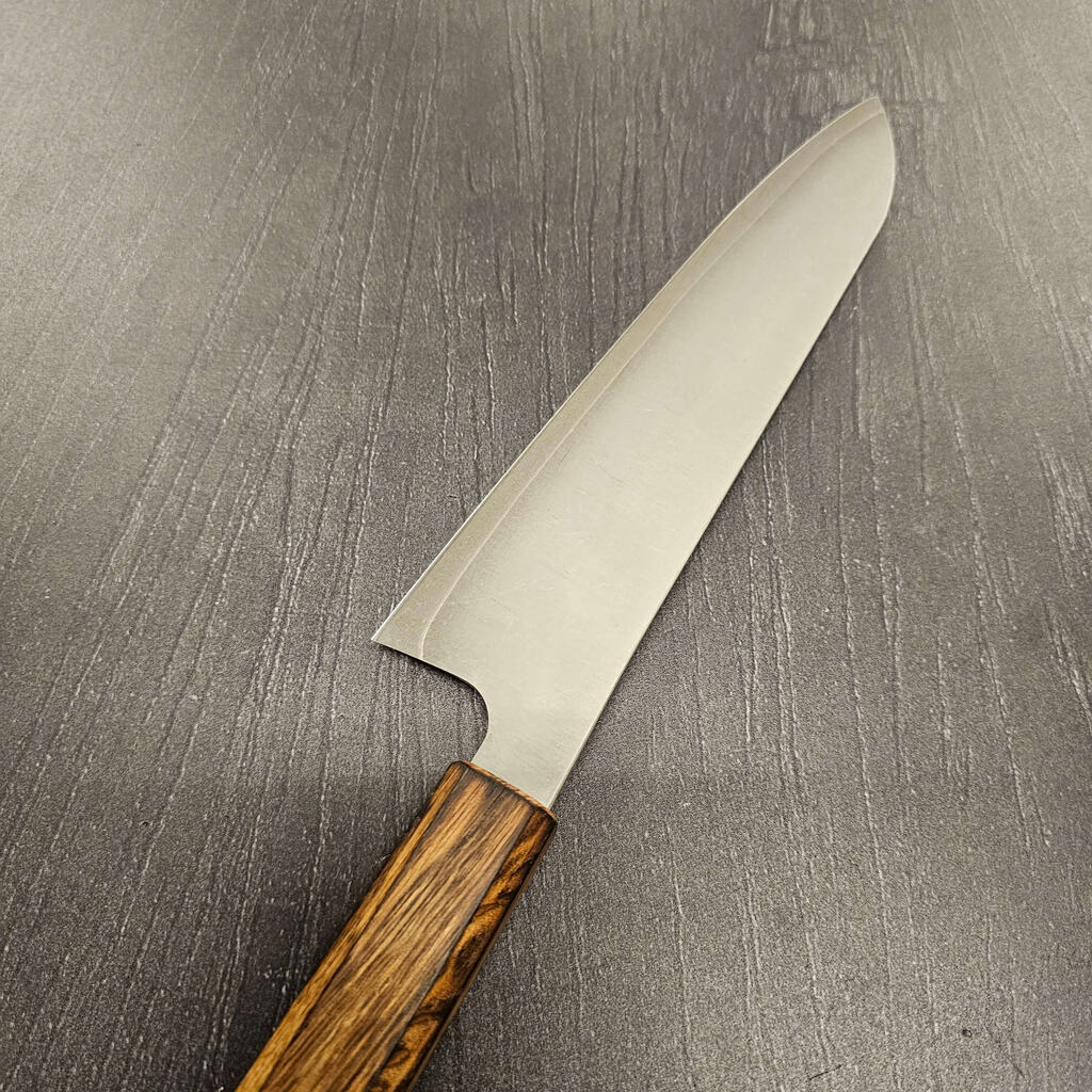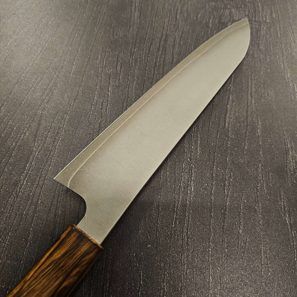Det rustfrie Gin-3 stål er altid en stor fornøjelse at arbejde med, og heldigvis er det også et af Akihito Furukawas favoritter. Disse blade har en rustfri cladding så altså er de helt rustfrie under normale forhold. Efter råbladene er tyndet mm. afsyres de og derefter stone-wash´es de så de får et super fedt rustikt udtryk.