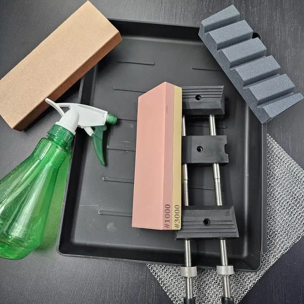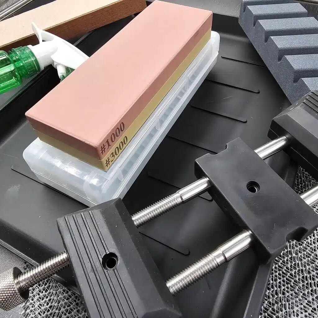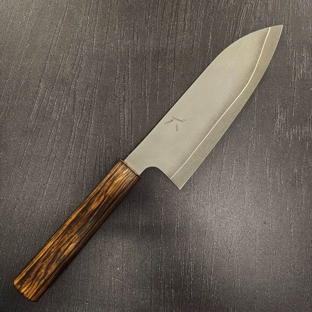 Det rustfrie Gin-3 stål er altid en stor fornøjelse at arbejde med, og heldigvis er det også et af Akihito Furukawas favoritter. Disse blade har en rustfri cladding så altså er de helt rustfrie under normale forhold. Efter råbladene er tyndet mm. afsyres de og derefter stone-wash´es de så de får et super fedt rustikt udtryk.
