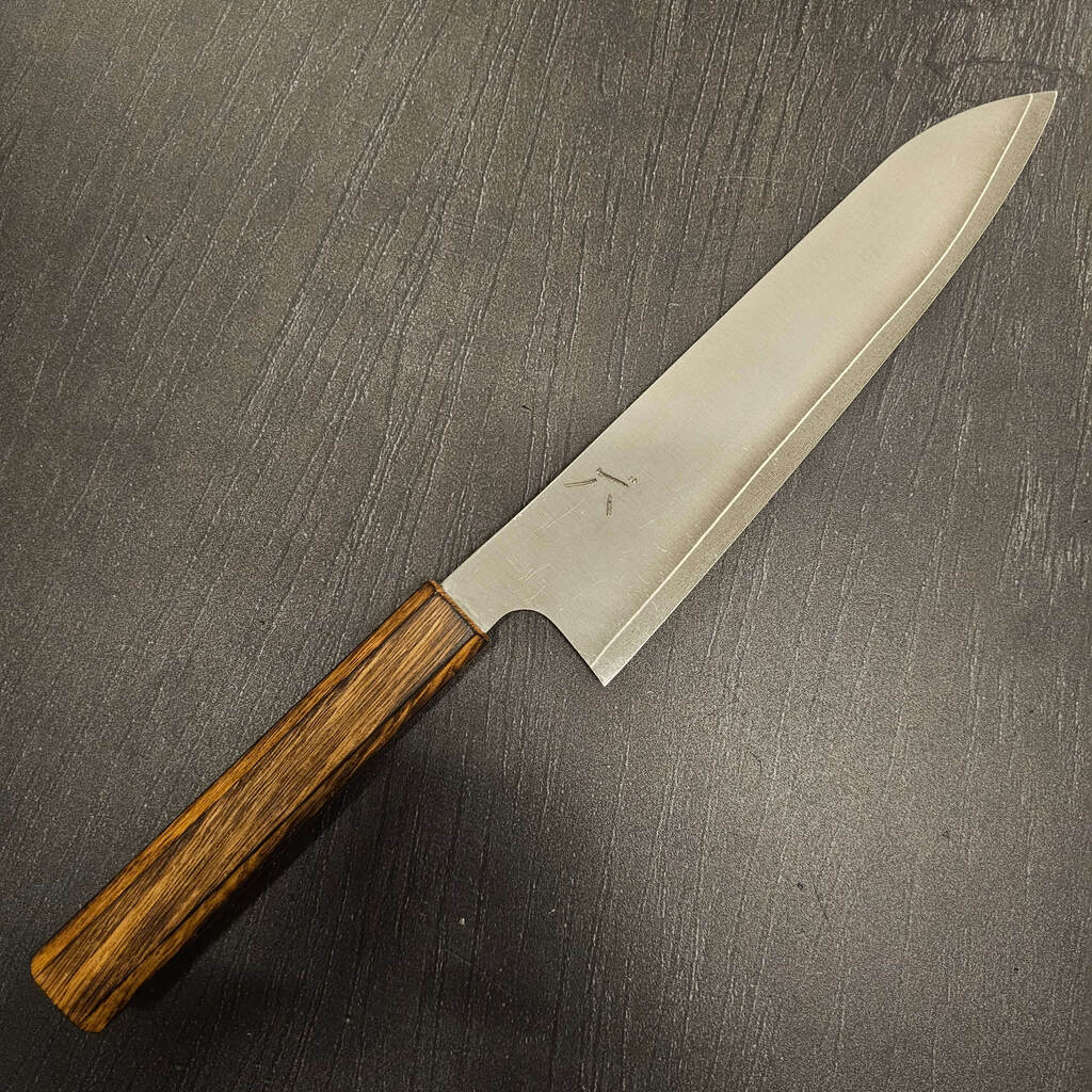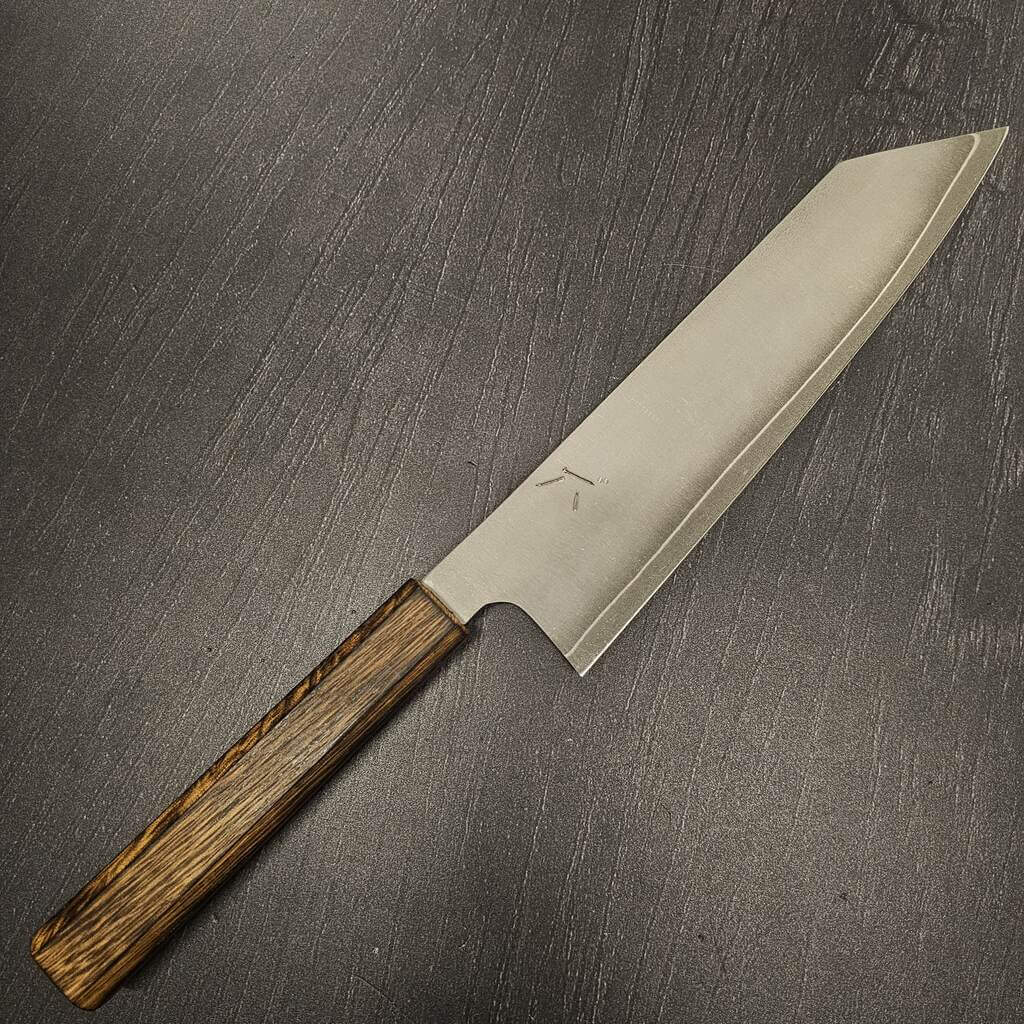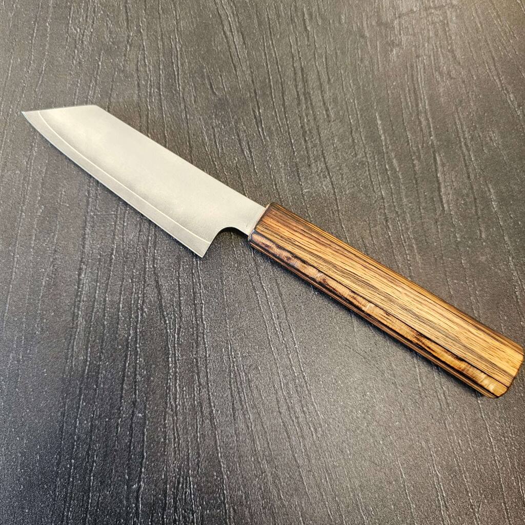 En morderne knivsform som jeg holder utroligt meget af, inspireret fra Mizusu Hamono har jeg lavet denne knivsform som jeg synes er fantastisk til mindre opgaver og trods det er en lille kniv, så får man stadig noget højde på bladet og kan køre den mod knoerne.