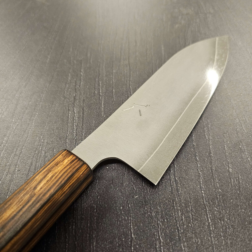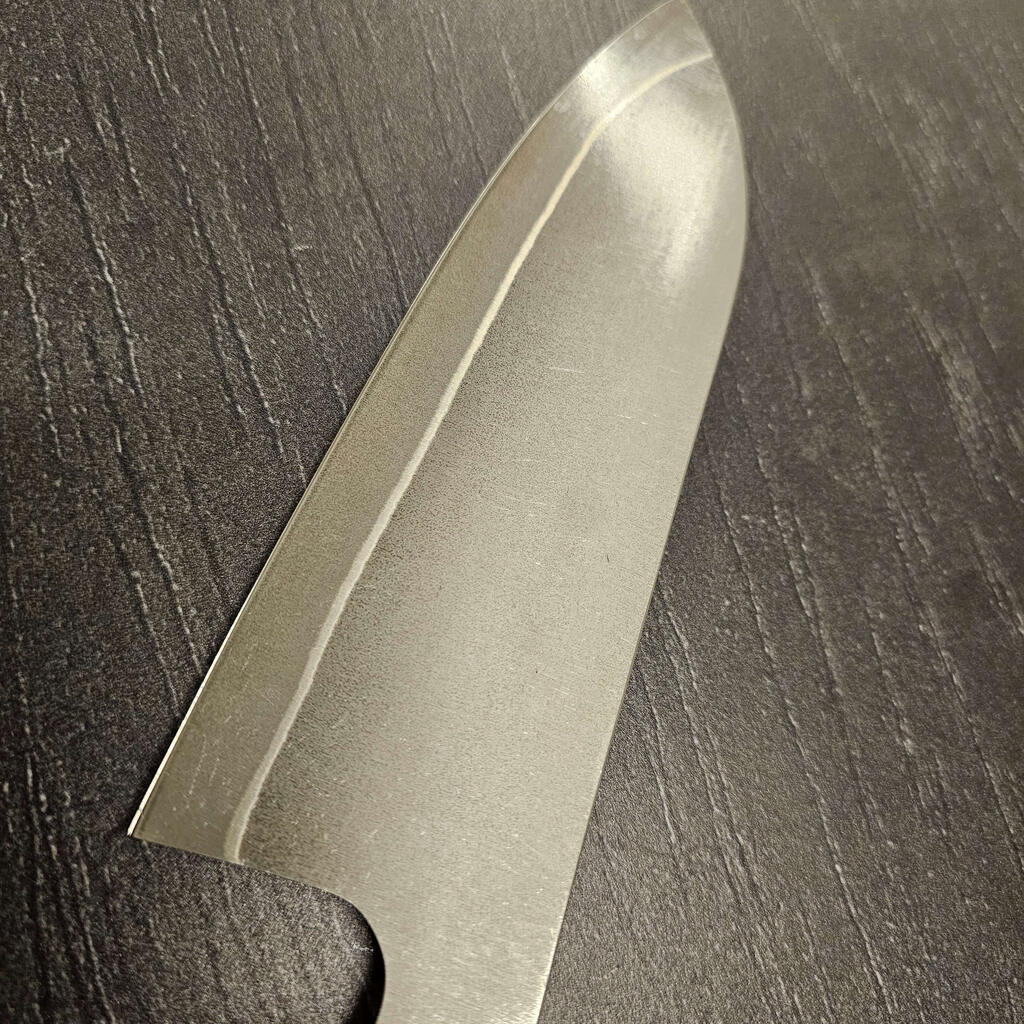 Det rustfrie Gin-3 stål er altid en stor fornøjelse at arbejde med, og heldigvis er det også et af Akihito Furukawas favoritter. Disse blade har en rustfri cladding så altså er de helt rustfrie under normale forhold. Efter råbladene er tyndet mm. afsyres de og derefter stone-wash´es de så de får et super fedt rustikt udtryk.