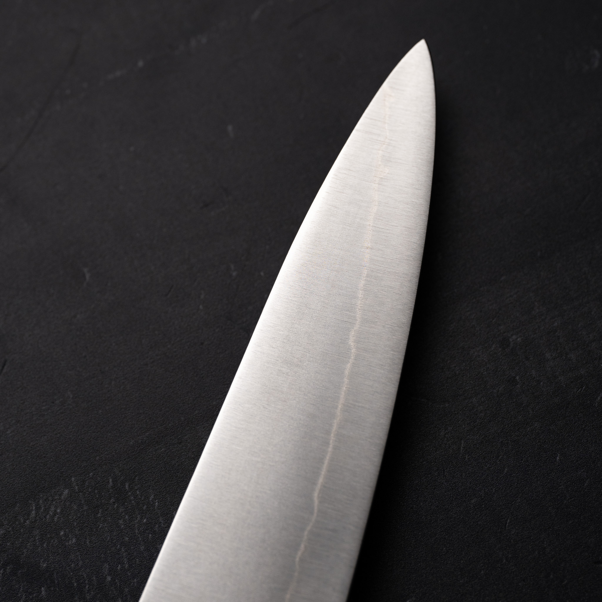 Jeg er super stolt af at kunne tilbyde denne serie bestående af Petty, Santoku og Gyuto, lavet i det rustfrie AUS-10 stål, som holder skarpheden dejligt længe og jeg har, som altid, lagt stort arbejde i at tynde bladene så de glider så let som ingenting igennem de forskellige emner du skærer. Kniven er også i sig selv meget tynde, så ikke just en begynderkniv eller “beater” men en utroligt skarp makker du kan have i mange år! Knivene i denne serie har en smule mere buet profil end vores andre knive, specielt fantastisk hvis du foretrækker at vugge med kniven (rock-chopping)