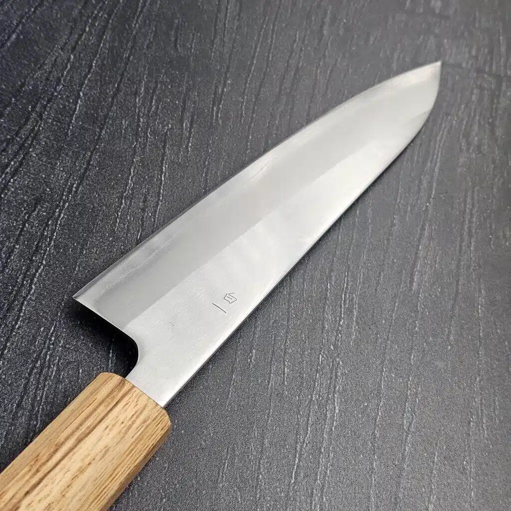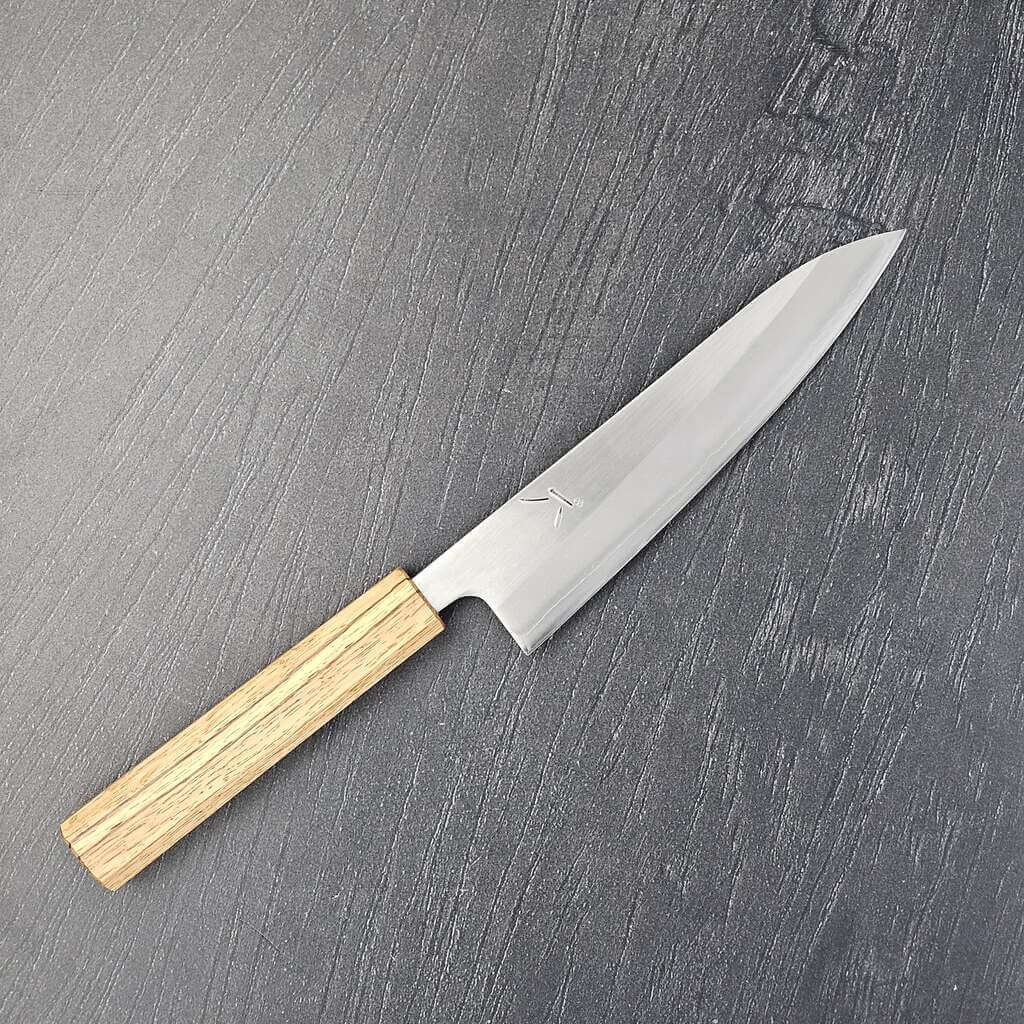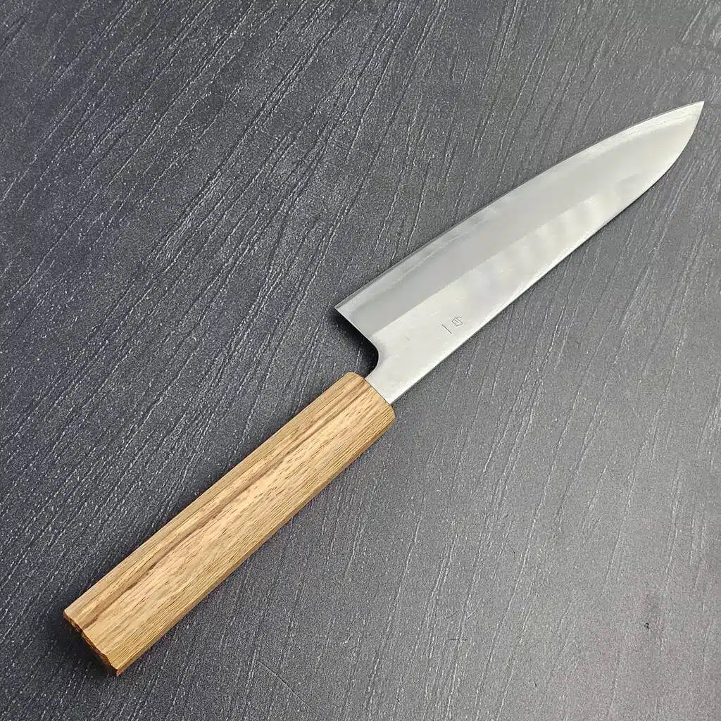 Vores 180 mm Gyuto-kniv er en ægte all-rounder i køkkenet. Den arbejder stille og effektivt, og den ved præcis, hvad den laver. Den er suveræn til præcisionsopgaver som at skære svampe, æbler og alle dine yndlingsfrugter og -grøntsager. En pålidelig ledsager, der ikke skuffer, når det kommer til madlavningens kunst. Utroligt flot japansk håndværk, stålet er tyndet flot ind så den glider uhindret igennem råvarerne.
