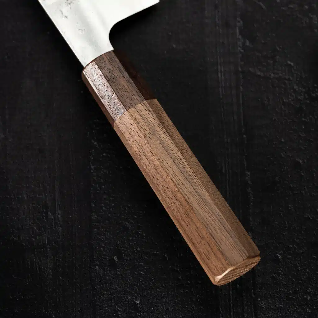 Gyuto også kaldet kokkekniven i Danmark, er den de fleste folk tænker på når man siger “køkkenkniv”. Det er en fantastisk allround kniv, der egentligt blev lavet til større kødstykker, deraf navnet “gyu-to (Kød-sværd)”. Denne kniv er 240 mm som gør den super god hvis du har en større steg eller store grøntsager f.eks..