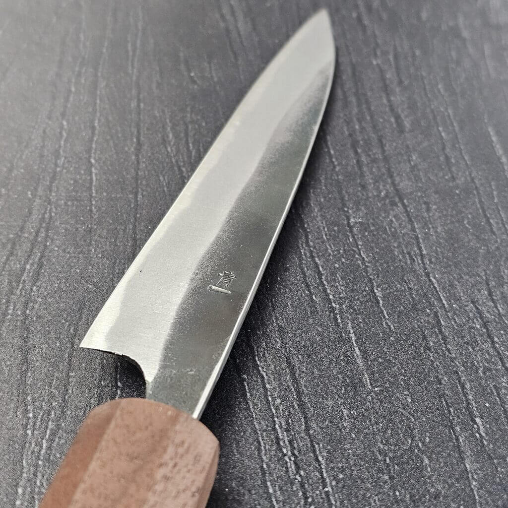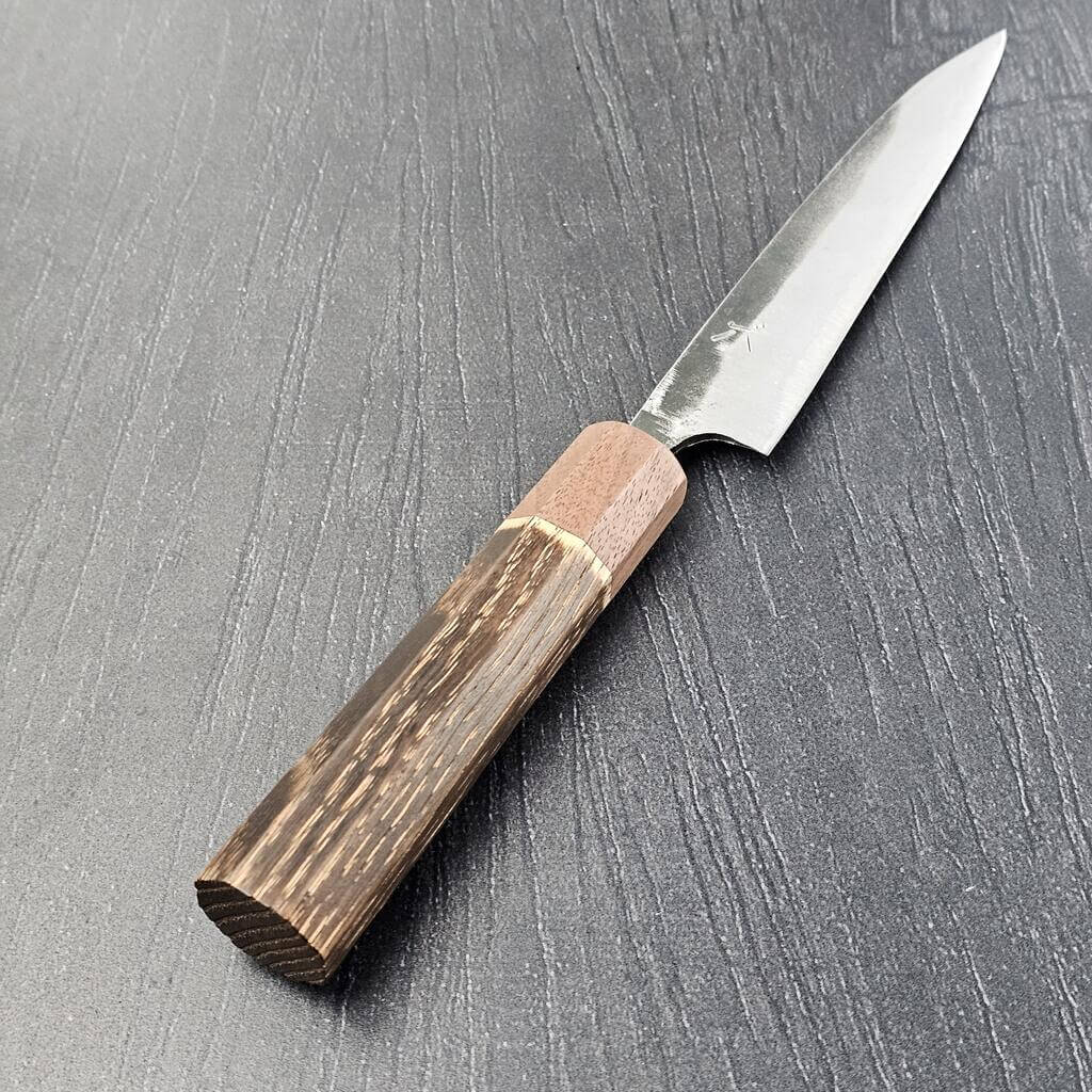 En super god petty kniv på 150 mm der fungerer til alle de mindre opgaver i køkkenet. Smedet på Shikoku-øen i Japan af Tokaji San og tyndet, slebet, poleret og skæftet på Frederiksberg. Ydermere et super flot skæfte i brændt kastanje og Valnød.